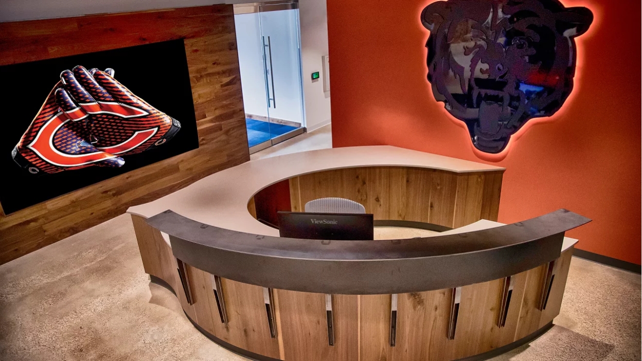 The iconic Chicago Bears were looking forward to establishing a downtown presence via an office for their sales and marketing group. Leveraging nearly 100 years of football history as inspiration, this 11,000 sq. ft. buildout on Wacker Drive needed to serve as both work space for employees and entertainment space for potential sponsors.