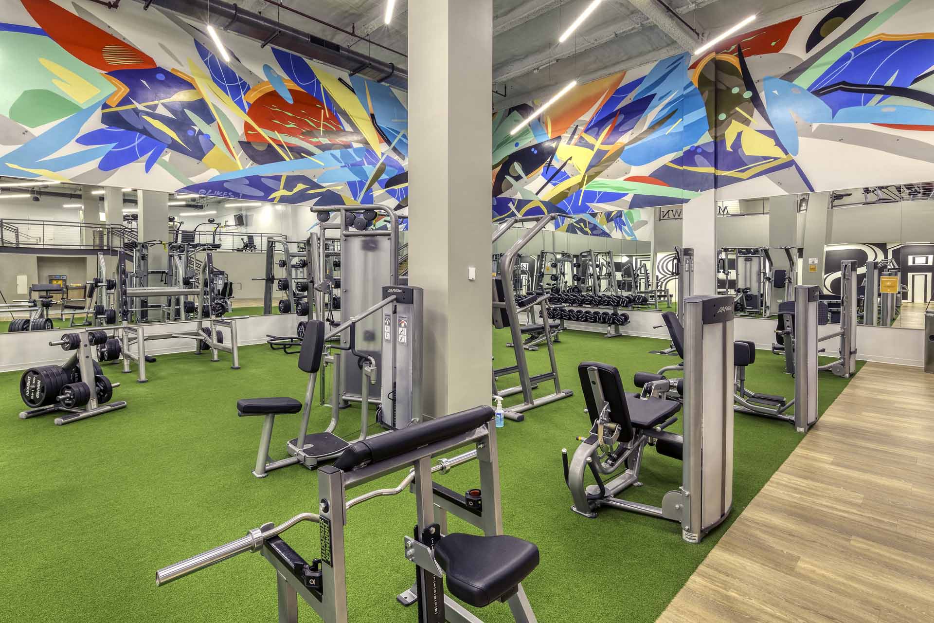 This $30 million project focused on renovating two connected towers, each with its own glass atrium. Existing flooring was removed and concrete was leveled to accommodate porcelain tile in the lobby. New stairs and glass railings were installed alongside Arktura millwork details, wood feature walls, modern light fixtures, and custom reception and security desks. A three-level, 11,400 sq. ft. fitness center received a complete overhaul as well, including exposed ceilings, turf flooring, and custom graffiti. High-end details like cloud ceiling tiles, wood trellis ceilings, metal panels, and an outdoor terrace help shape a moody yet inviting lounge, and the sleek, minimal cafe now has ample seating ideal for collaboration. Finally, the conference center was painted and carpeted, giving it the refresh needed to match the building’s modern aesthetic.