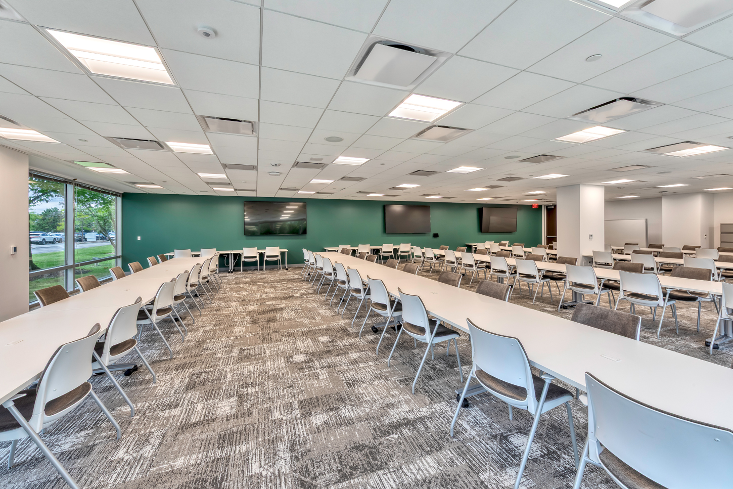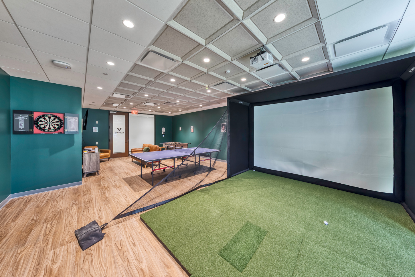 Phase one included a full refresh across three floors, featuring new paint and carpet throughout the entire 77,000 square feet, along with the installation of all new furniture and signage to reflect Vantive’s emerging corporate identity. Phase two introduced several highly specialized and amenity-driven spaces. Highlights include a fully custom barista café built exclusively for Vantive employees, complete with new exhaust systems, upgraded MEP infrastructure, custom millwork, and two high-end espresso machines. The buildout also included a large training room accommodating up to 100 people, a half-floor pharmacy office buildout, and a custom game room featuring a golf simulator. A dedicated cooling system was incorporated into the pharmacy training room to support employee use and operational requirements.